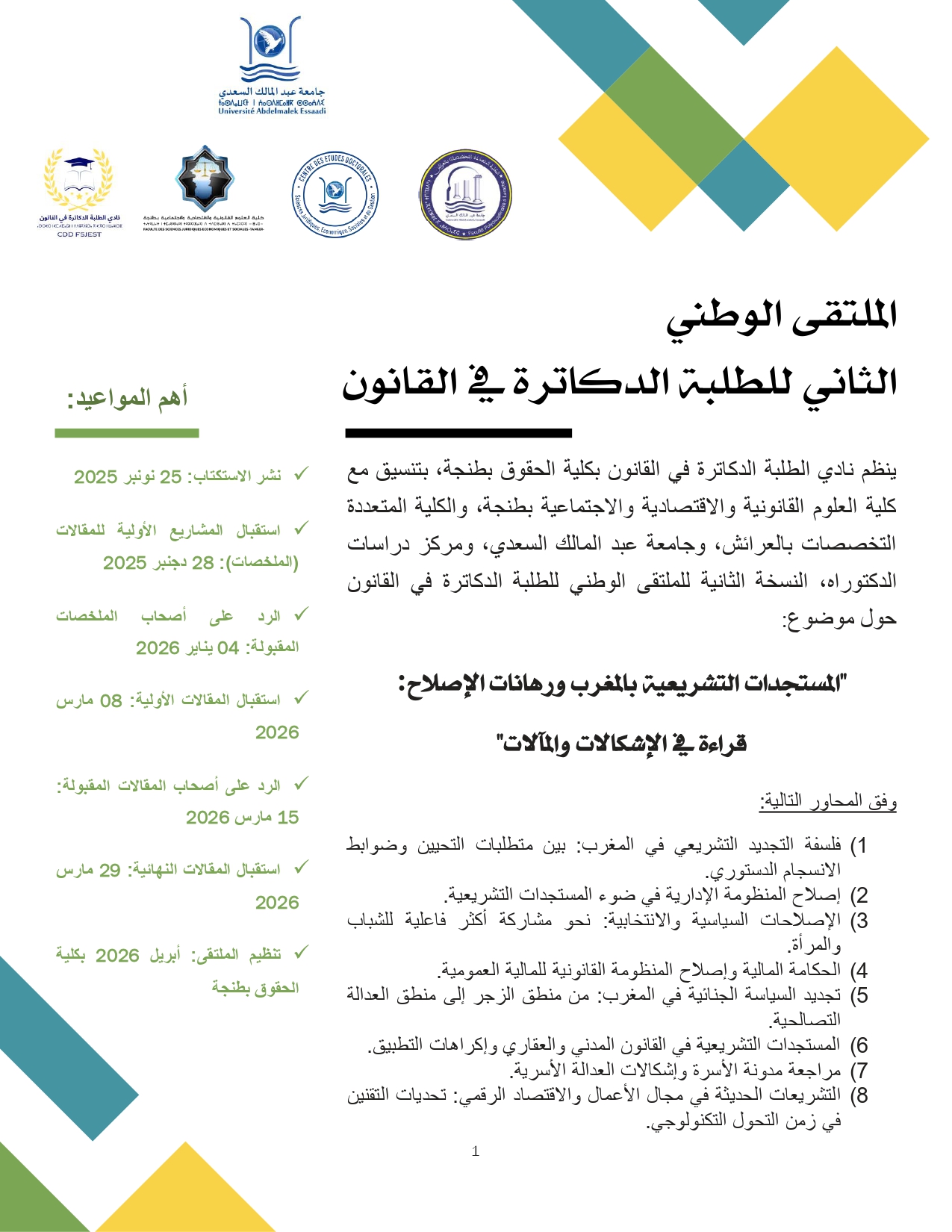 الملتقى الوطني الثاني للطلبة الدكاترة في القانون