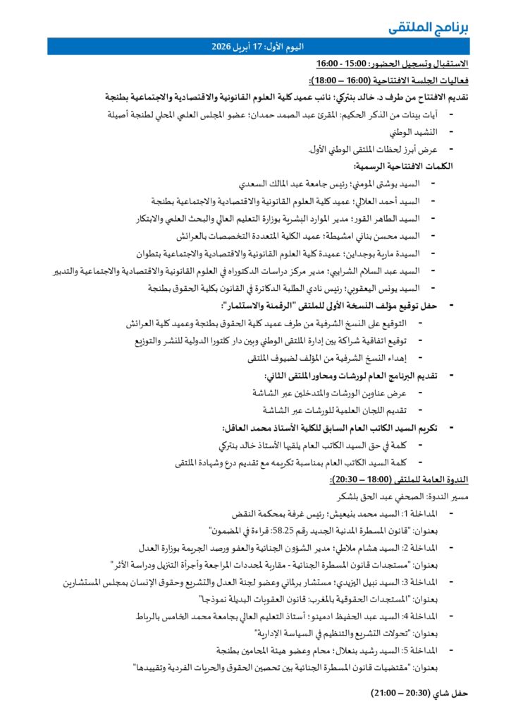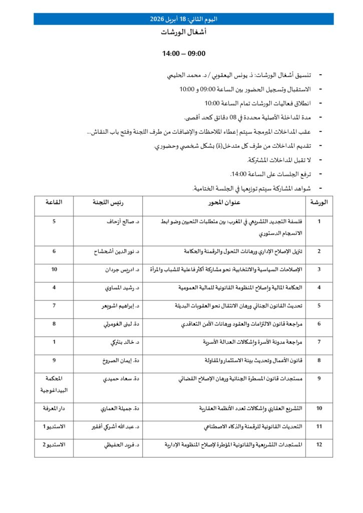 الملتقى الوطني الثاني لطلبة الدكتوراه في القانون: المستجدات التشريعية بالمغرب ورهانات الإصلاح
