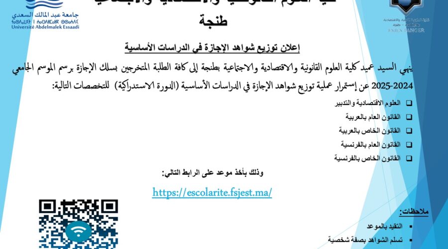 إعلان توزيع شواهد الإجازة في الدراسات الأساسية