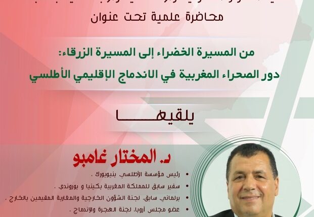 محاضرة علمية تحت عنوان من المسيرة الخضراء إلى المسيرة الزرقاء دور الصحراء المغربية في الاندماج الإقليمي الأطلسي